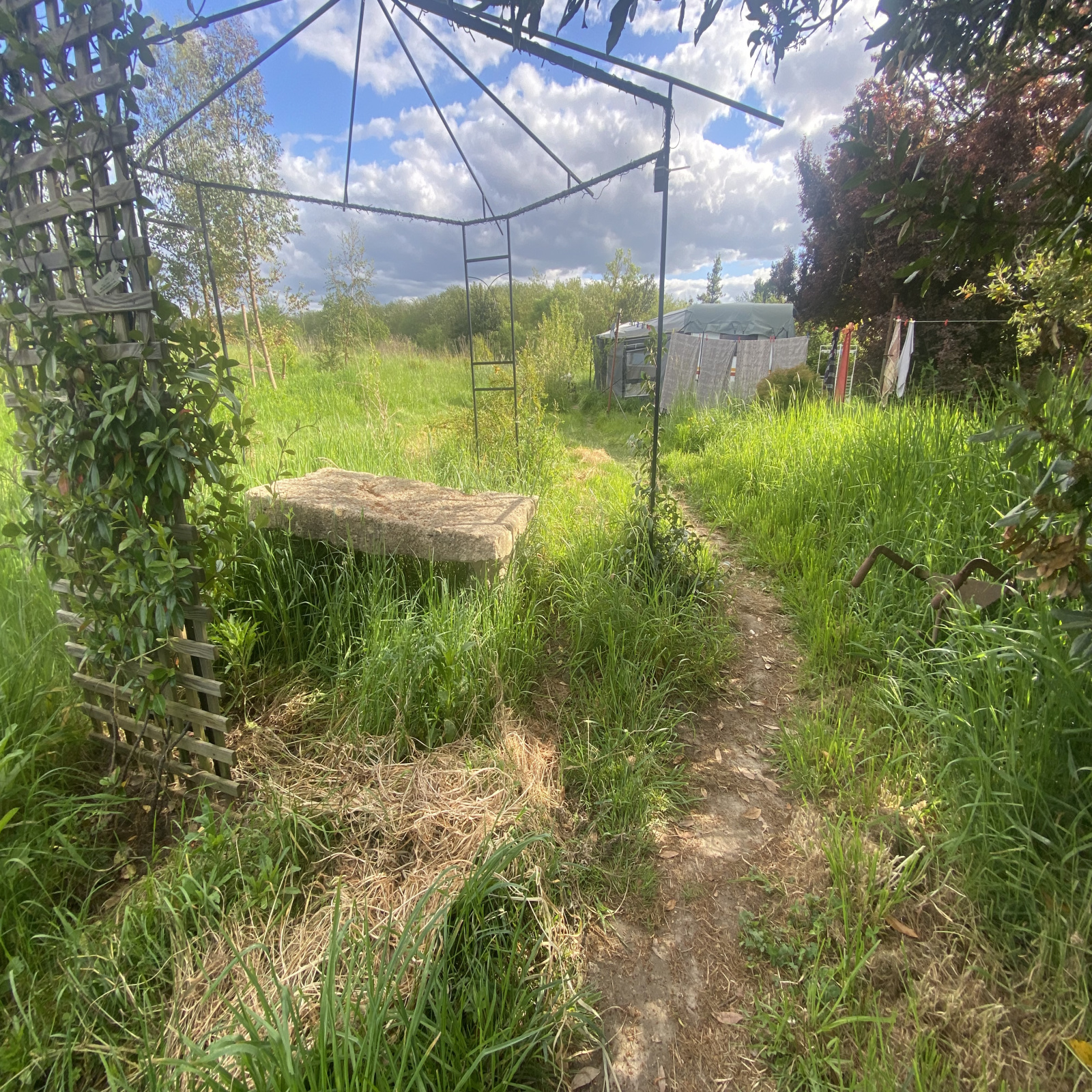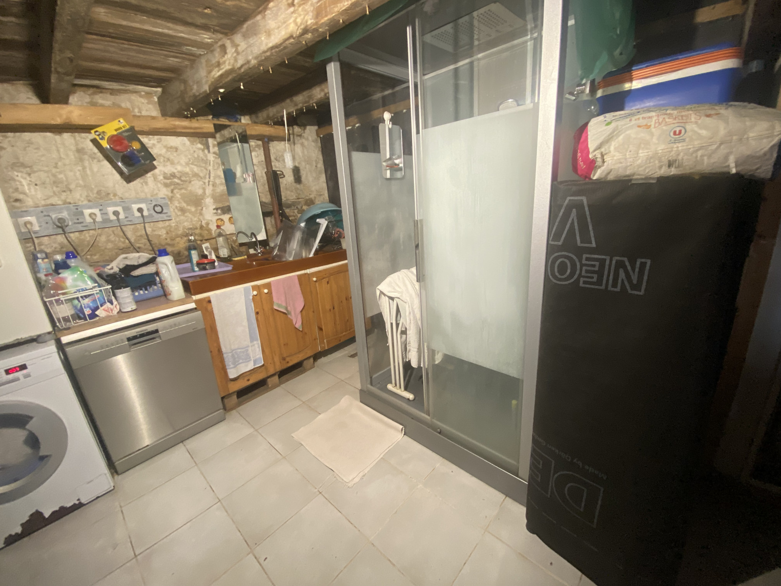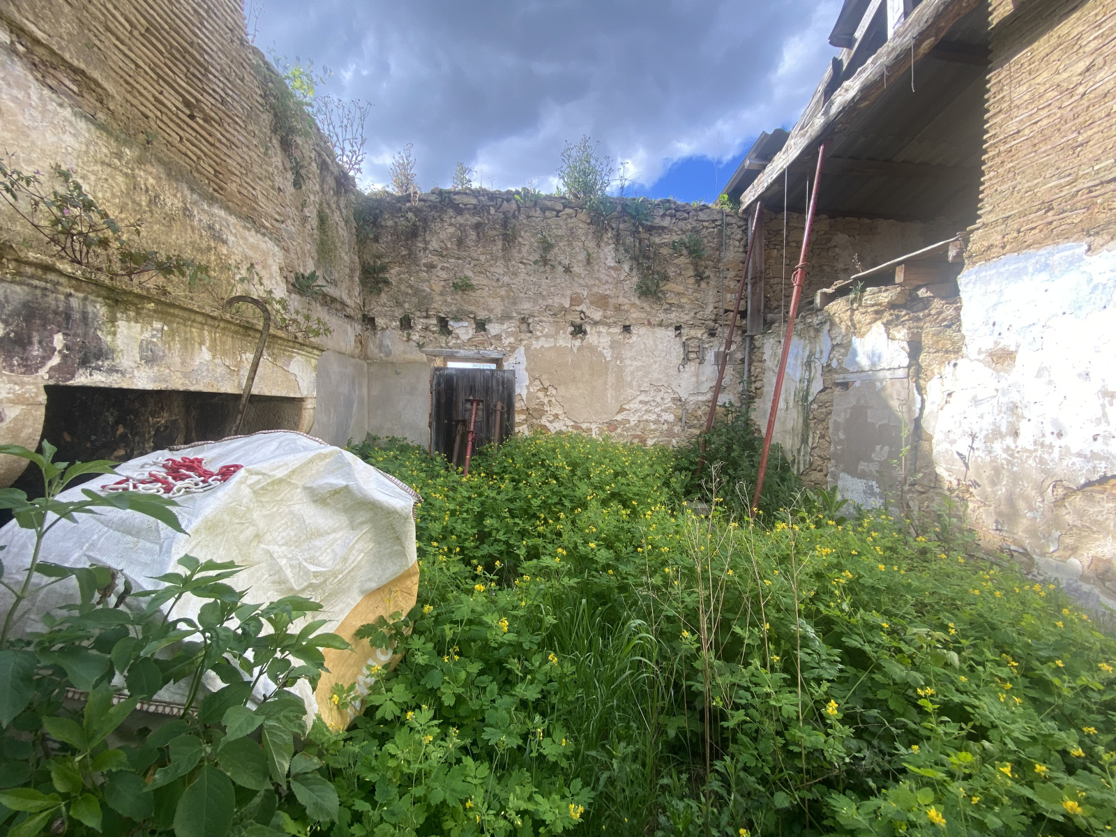Sur place matériaux nécessaires à la rénovation (bois de charpente, tuiles, isolation…).
