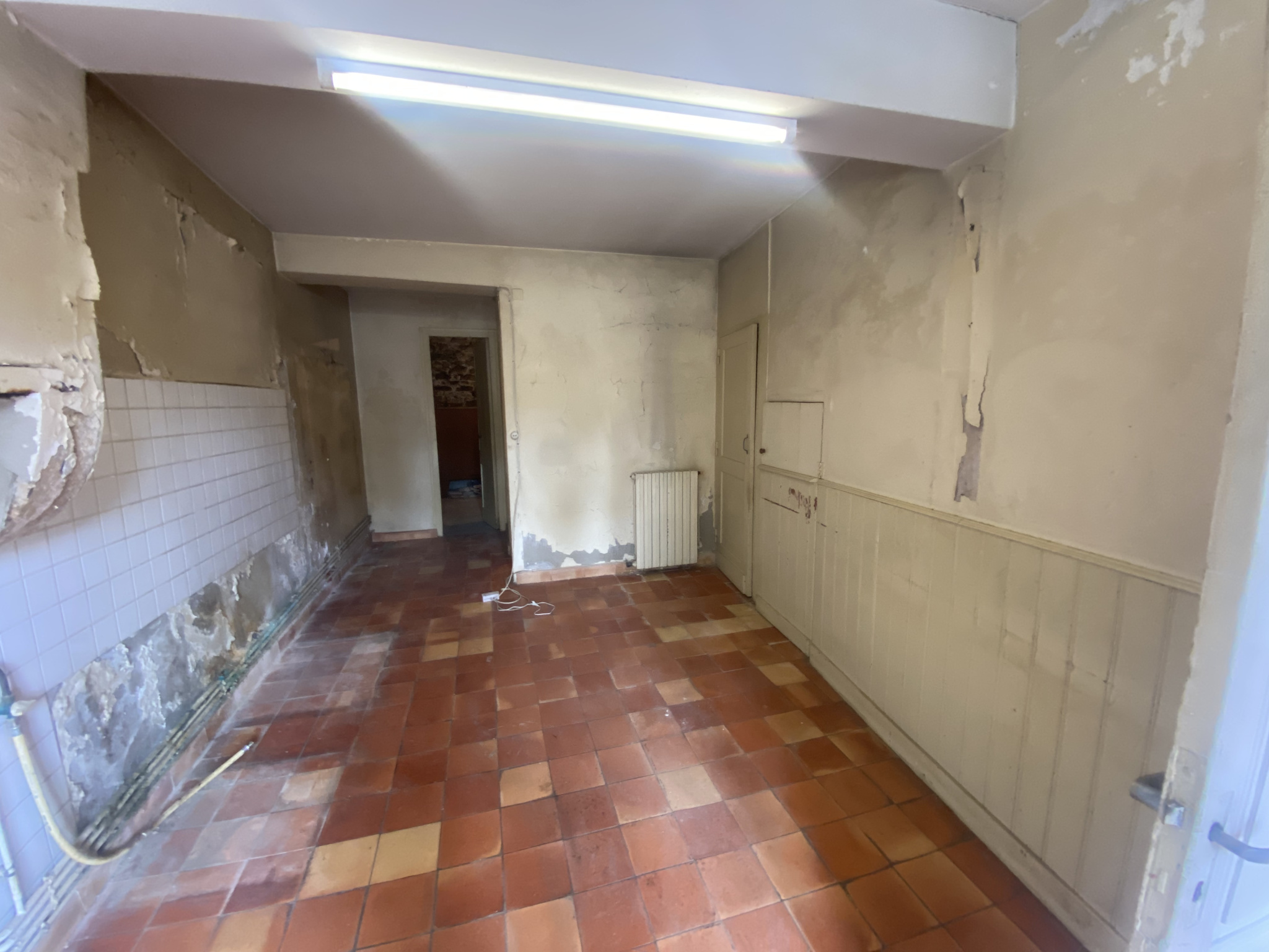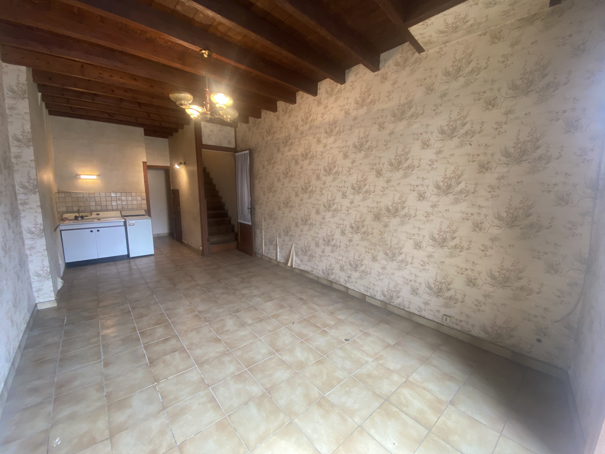 Maison d’environ 68 M2 avec entrée, pièce principale – cuisine, salle d’eau, chai, wc. 1er étage, 2 chambres, wc.