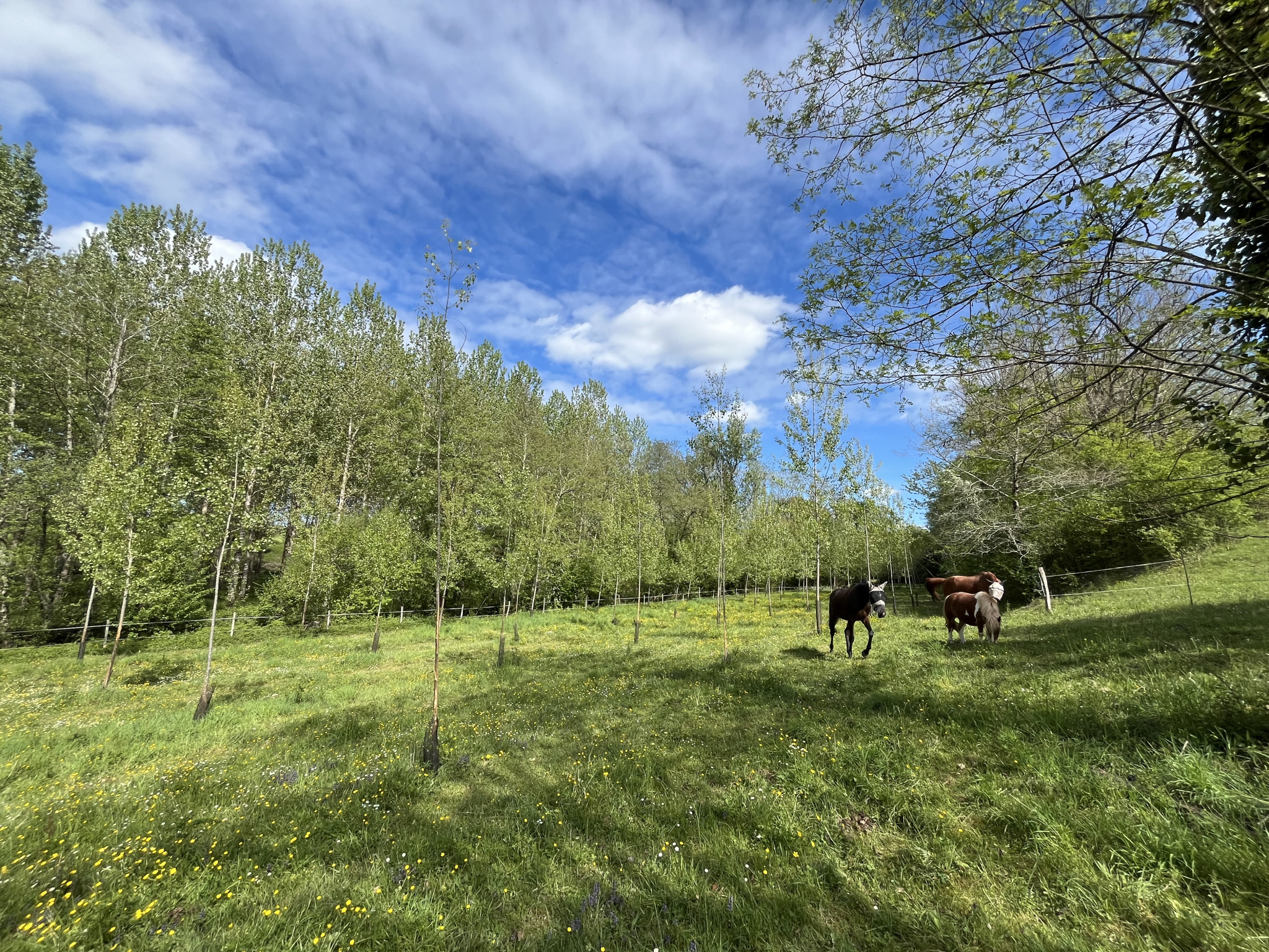 A l’extérieur, vous trouverez un grand terrain arboré et vallonné (arbres fruitiers, peupliers, chênes...) clos de 3.5 Ha traversé par 3 ruisseaux. Ce véritable havre de paix saura séduire les passionnés de la nature et conviendra parfaitement à l'accueil de chevaux ou d'autres animaux.