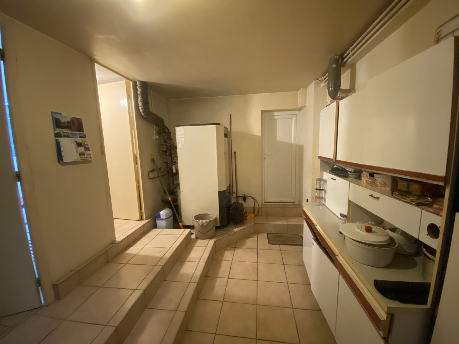 Jolie maison ancienne en pierres de 161 M2 habitables comprenant une cuisine aménagée avec cheminée insert, un séjour de 32 M2 avec cheminée, un bureau ou chambre, cellier-chaufferie, salle d’eau, wc.