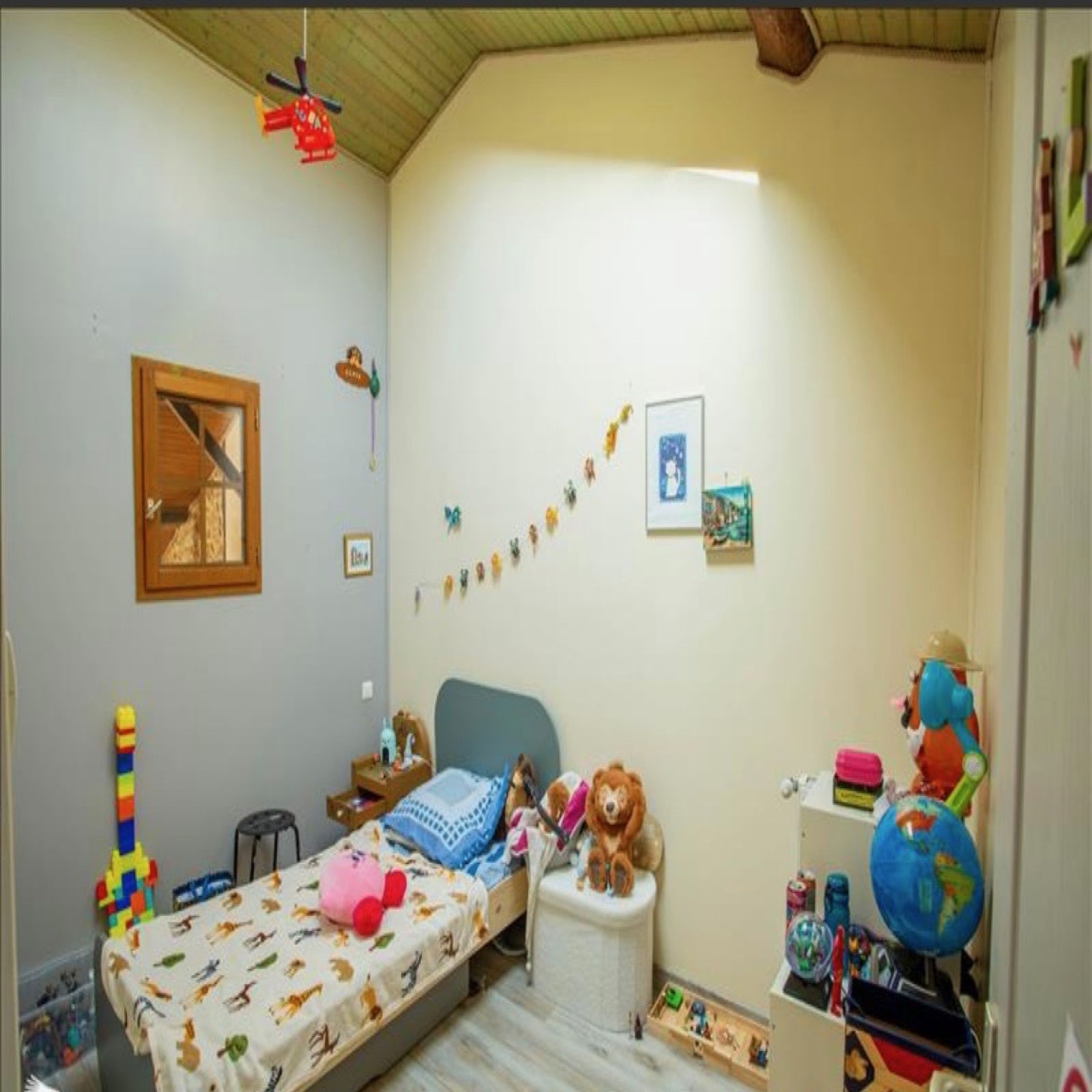 A l'étage, le coin mezzanine dessert 3 chambres, une salle de bains avec toilette, un dressing.