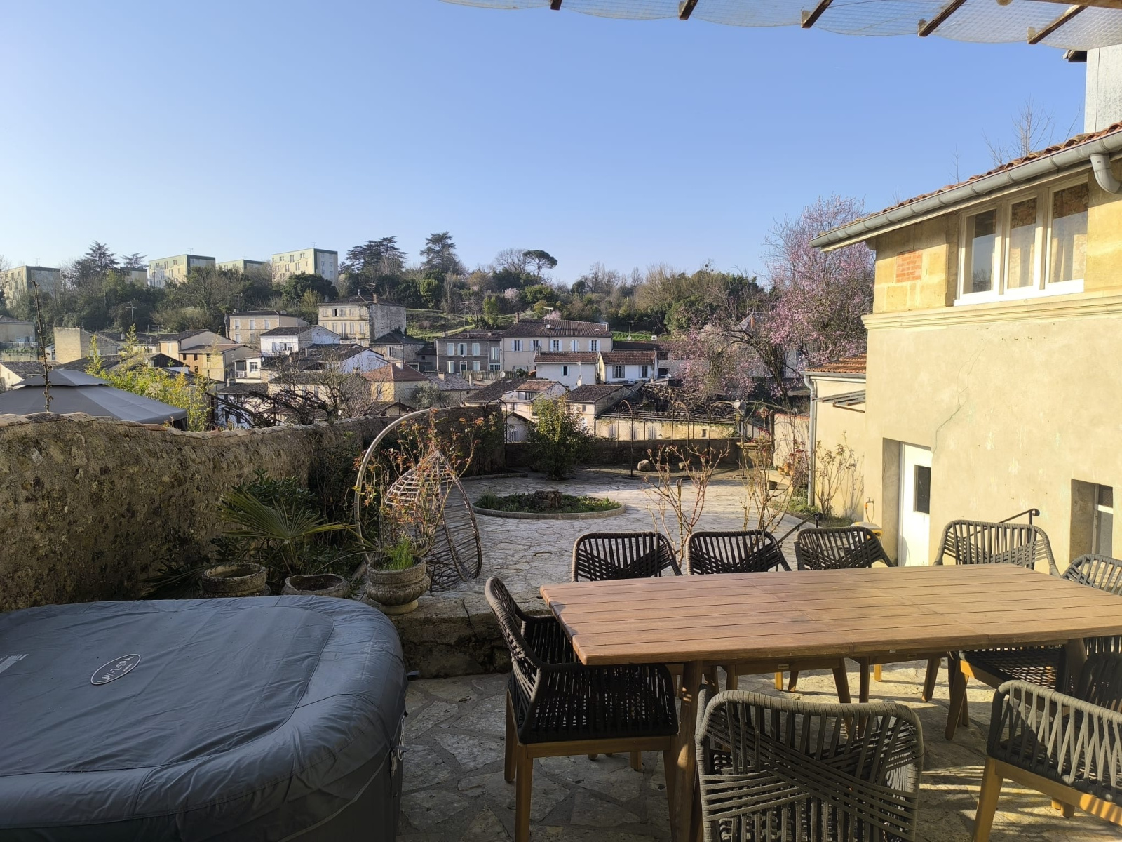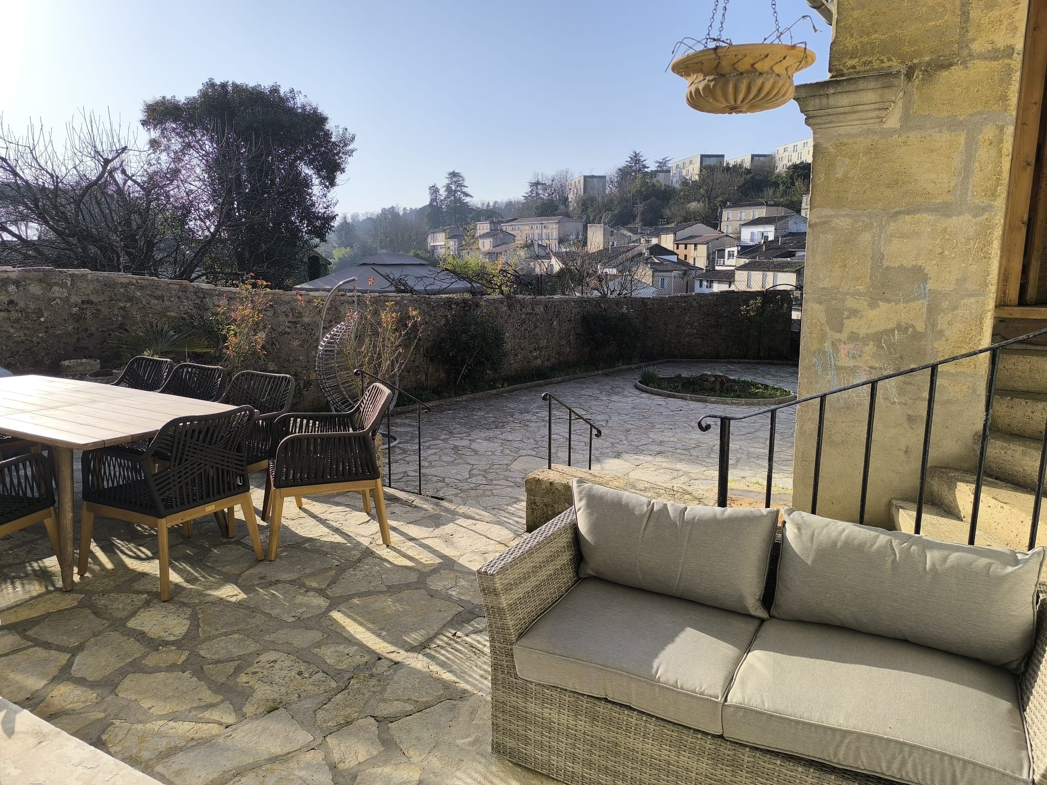 A l’extérieur, vous pourrez profiter d’une terrasse et d’une grande cour d'environ 200 M2, rare en centre ville.