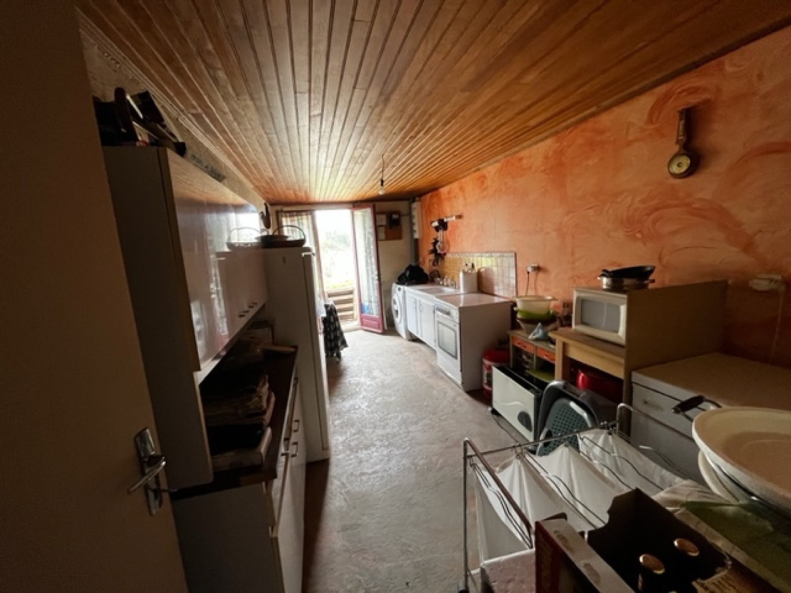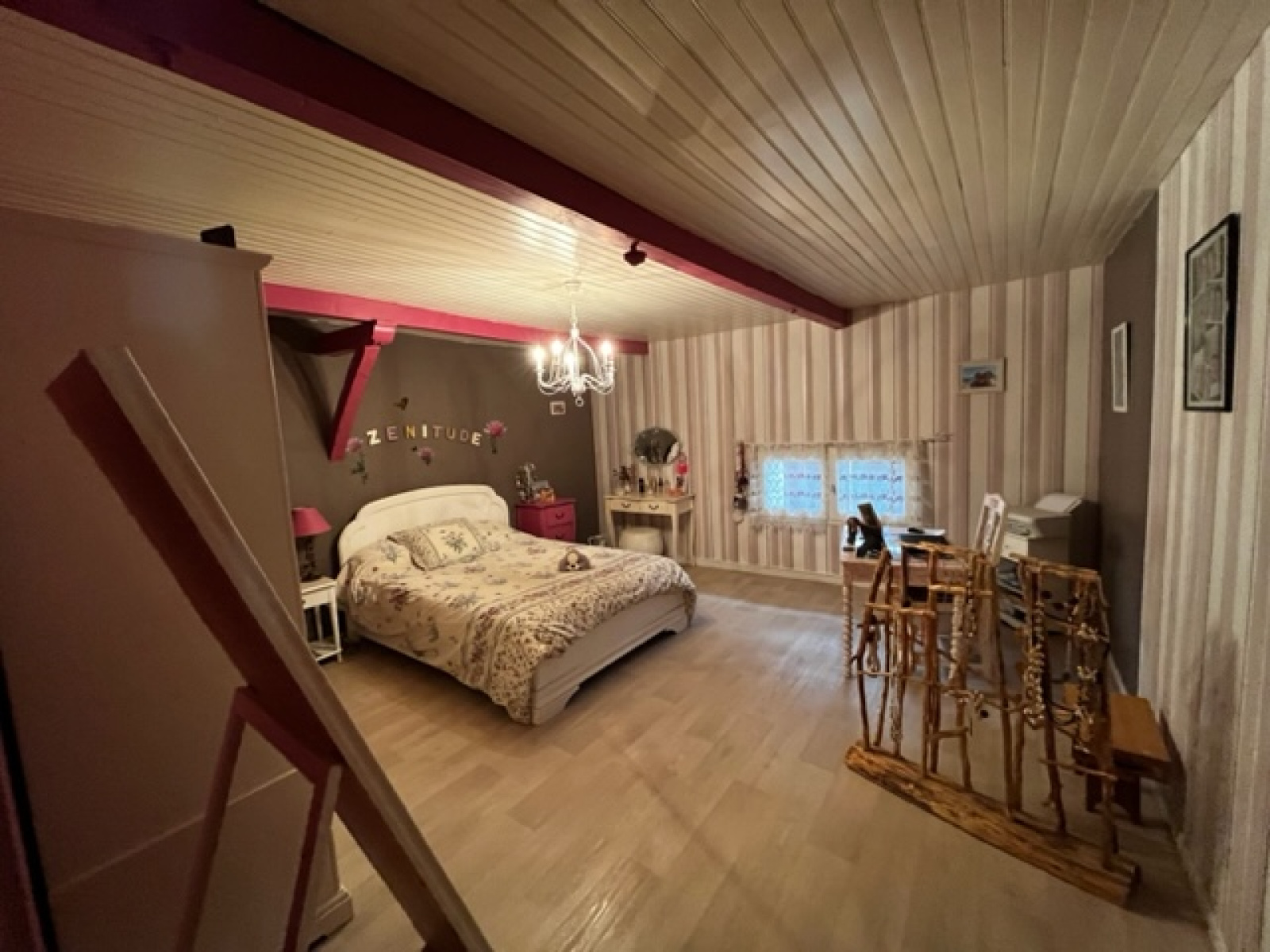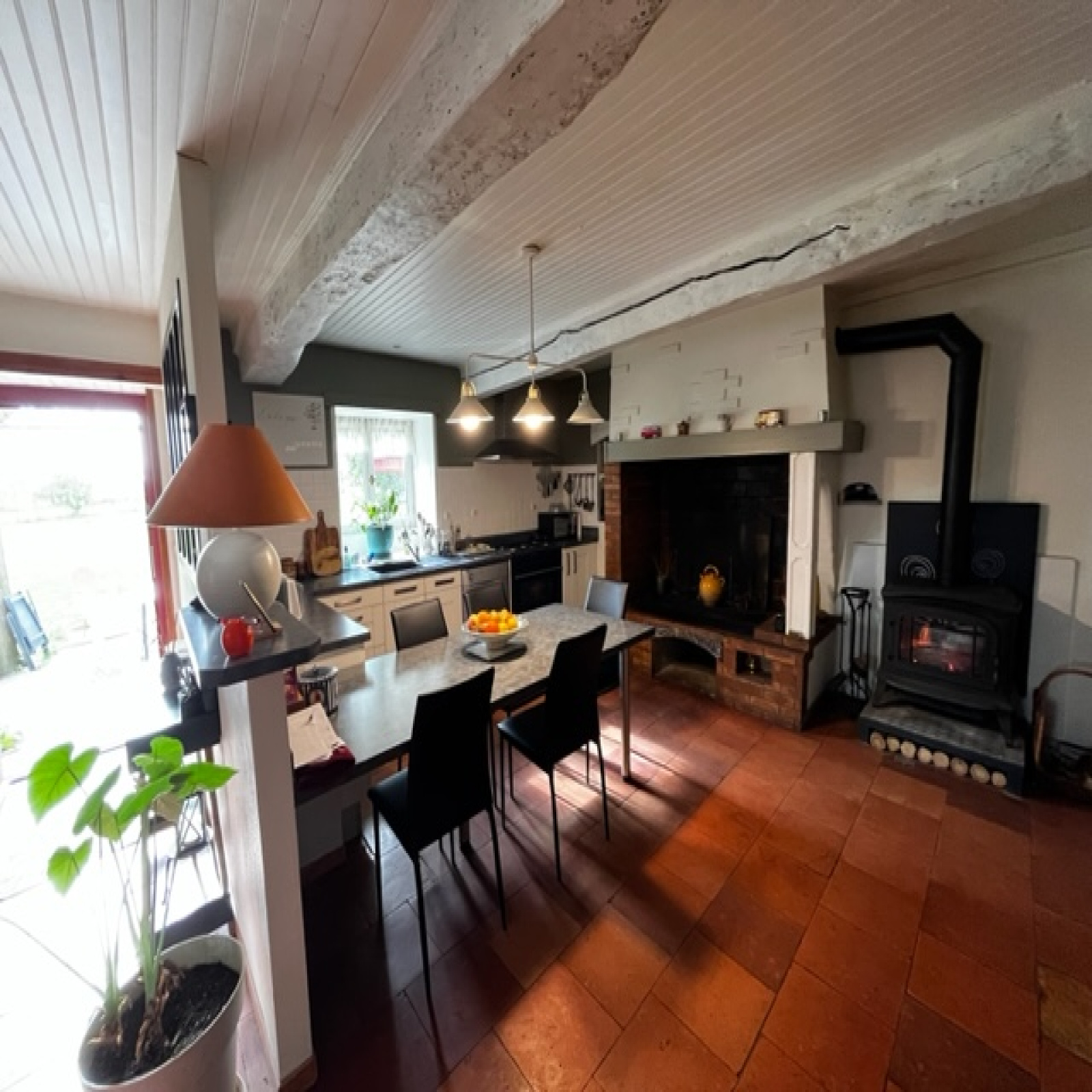 La maison ancienne de 200 M2 comprend une grande pièce principale de 70 M2 avec cuisine meublée et poêle à bois, un couloir, quatre chambres, une salle d’eau, un wc, un débarras, une pièce, une buanderie et grenier.
