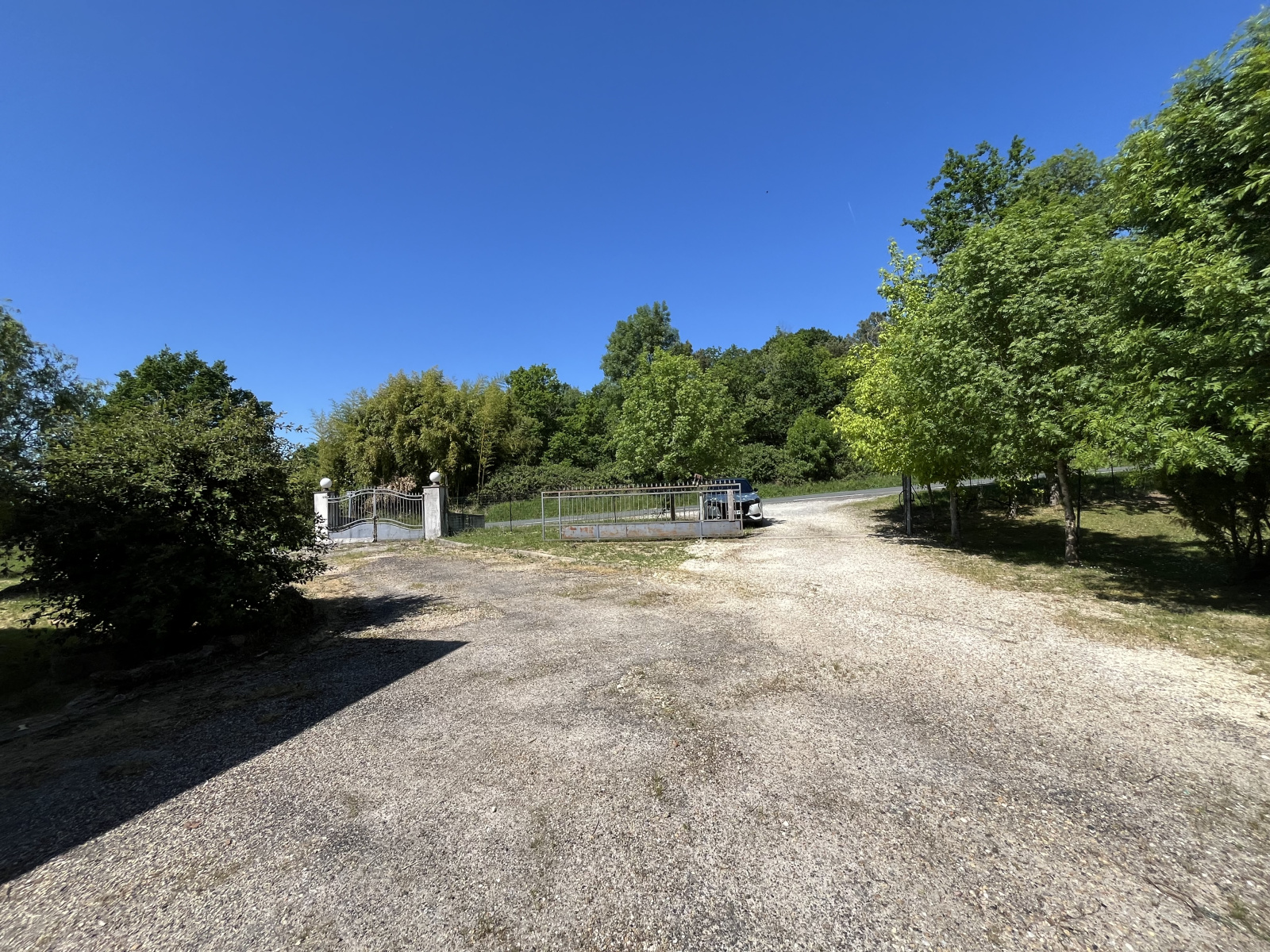 Implantée sur un magnifique terrain arboré de 4200 m2, la propriété bénéficie d'un environnement privilégié avec 2 portails d'entrée distincts et un garage indépendant.